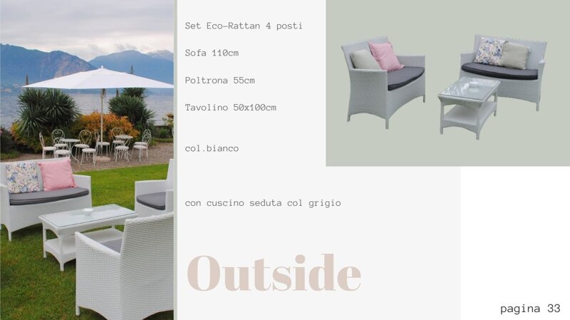 OUTSIDE Set Ecorattan Sofa+ 2 poltrone + tavolino con cuscino seduta